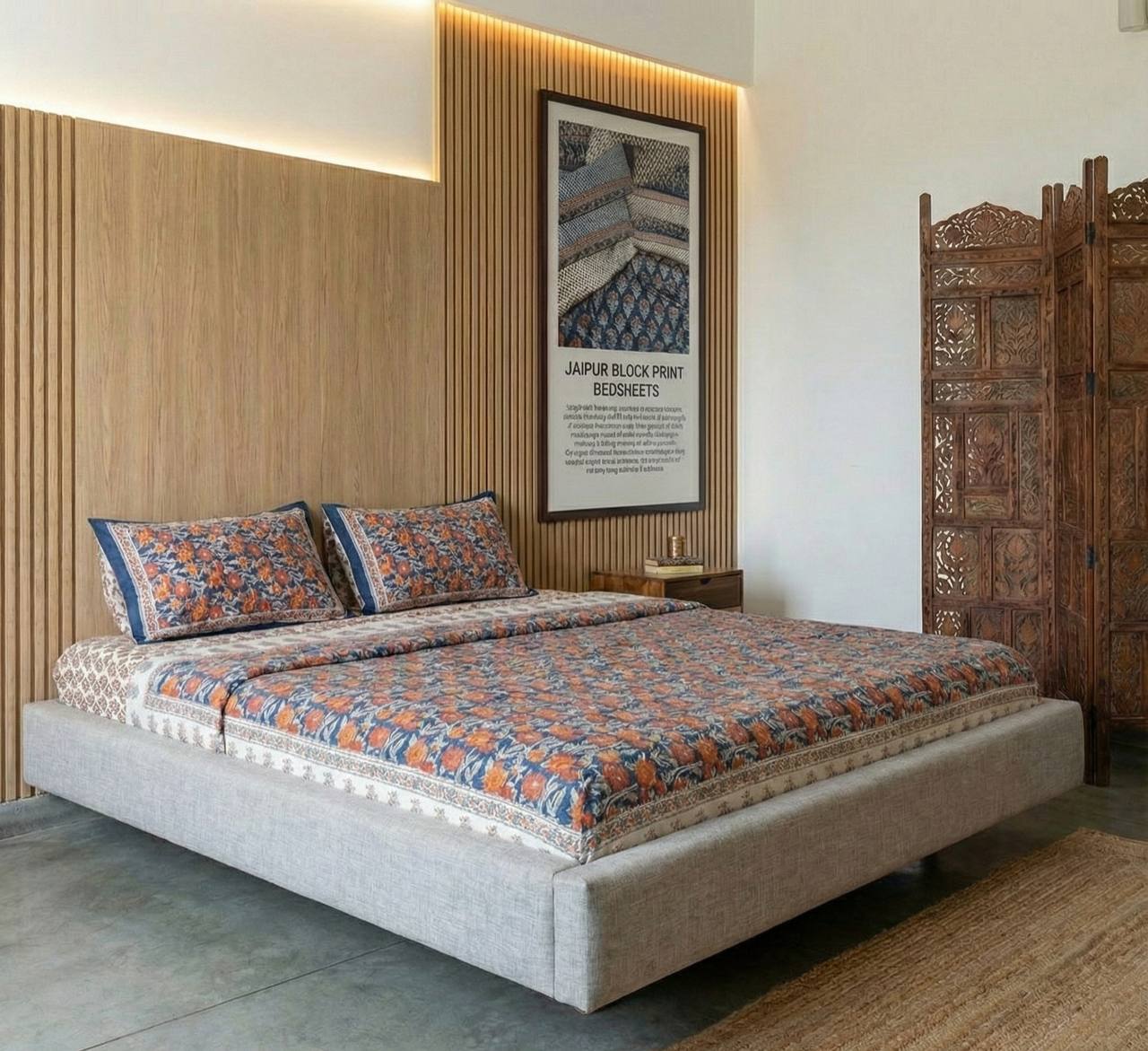 Handcrafted with precision and inspired by timeless artistry, our Jaipur Block Print Bedsheets bring a touch of heritage into modern living. Each piece is carefully made using traditional block-printing techniques, blending vibrant patterns with natural comfort. Designed to elevate your bedroom with elegance and cultural charm, these bedsheets are a true favorite — durable, cozy, and full of character.